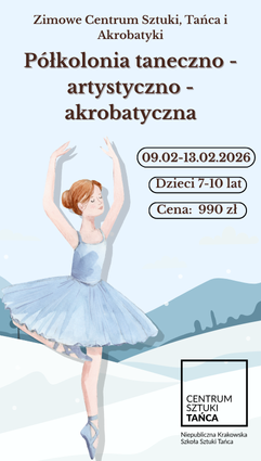 Centrum Sztuki Tańca działa w Krakowie od września 2015 roku. Specjalizujemy się w nauczaniu baletu, który jest podstawą dla każdego tancerza. Naszą ofertę wzbogacamy o zajęcia z tańca współczesnego oraz warsztaty z udziałem zaproszonych pedagogów. W toku nauki uczniowie mają możliwość prezentowania swoich umiejętności podczas szkolnych koncertów baletowych. Najzdolniejsi uczniowie reprezentują szkołę na konkursach tanecznych.